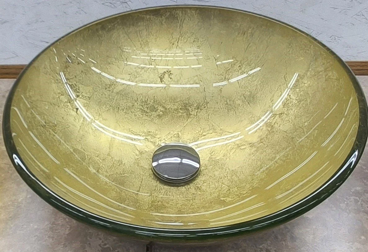 Clear Gold Plated Glass Vessel Sink Feb 11 Written By Samuel Arnold SINK # SIZE PRICE CLEAR GOLD PLATED GLASS BOWL VESSEL SINK/ICF-7044 16x16x5.5 $109.00 Samuel Arnold