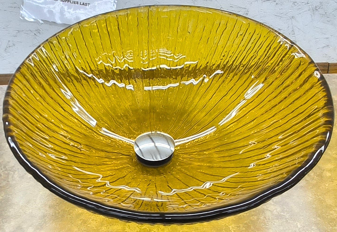 Clear Yellow Ribbed Glass Bowl Vessel Sink