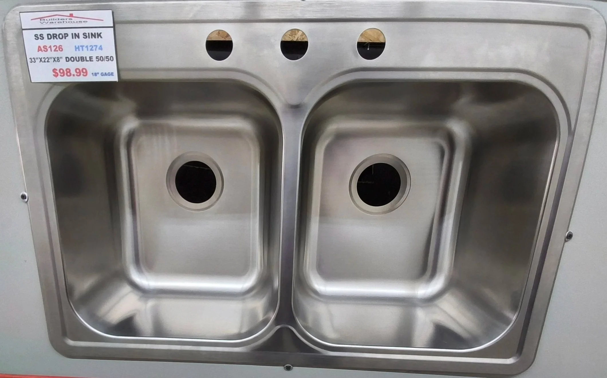 | AS126 DOUBLE 50/50 18 GAUGE / HT1274 | STAINLESS STEELE DROP-IN | 33x22x8 | $98.99.00 |
