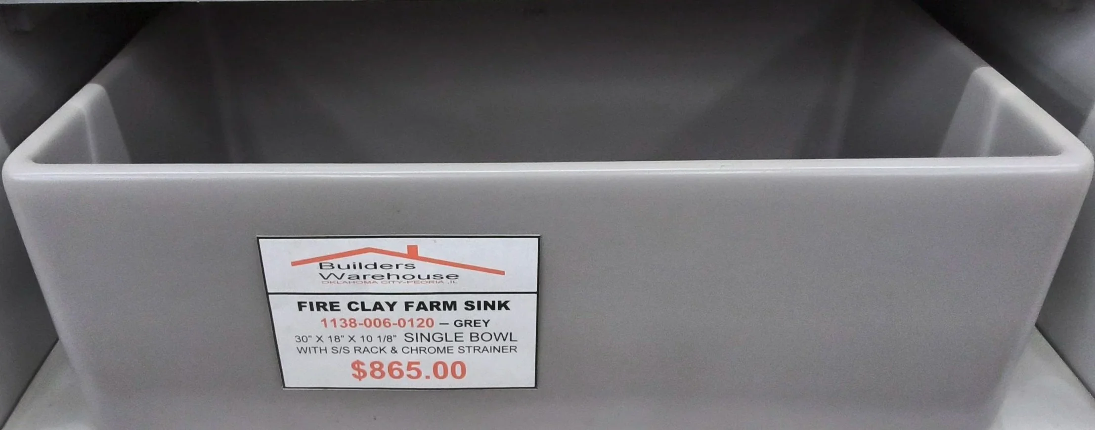 | GREY SINGLE BOWL 1138-006-0120 | FIRE CLAY FARM SINK | 30x18x10.15 | $865.00 |