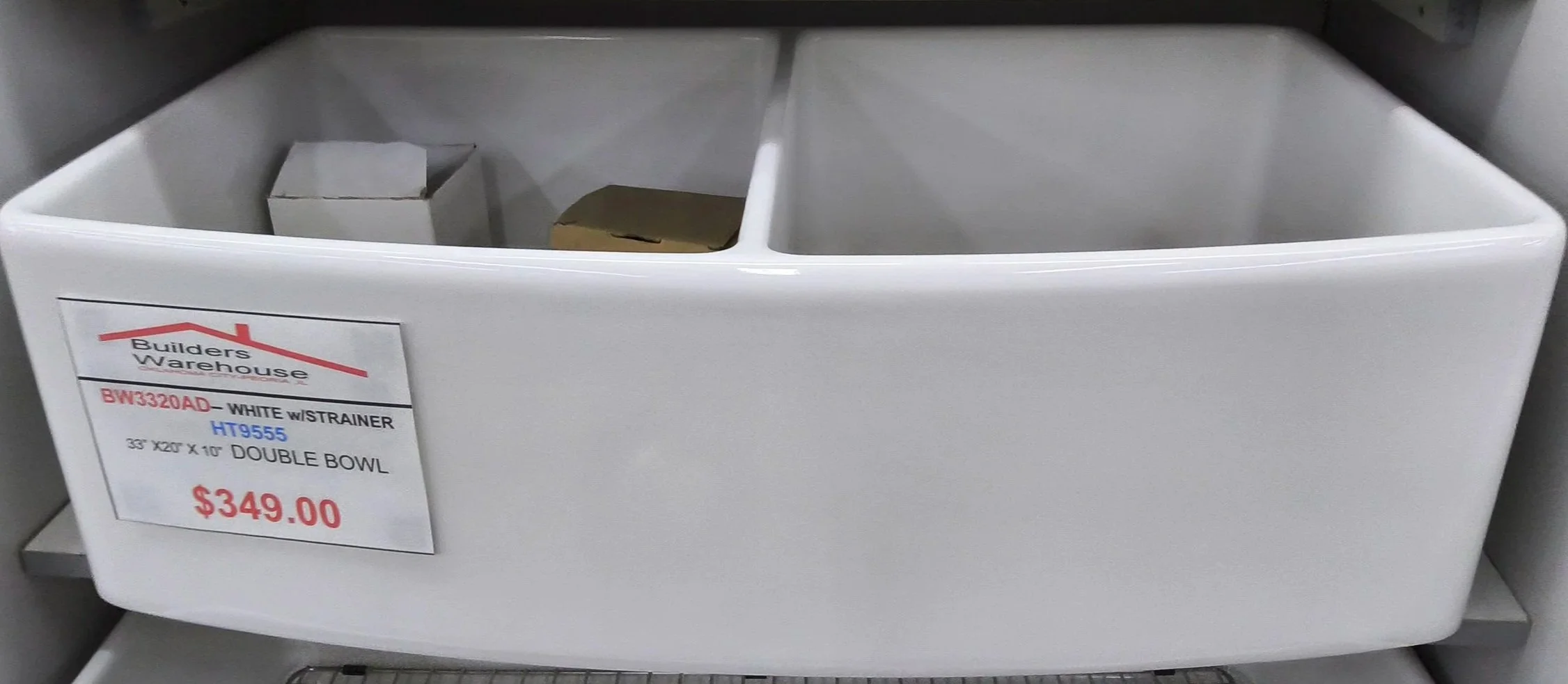 | WHITE DOUBLE BOWL / HT9555 - BW3320AD | FIRE CLAY FARM SINK | 33x20x10 | $349.00 |
