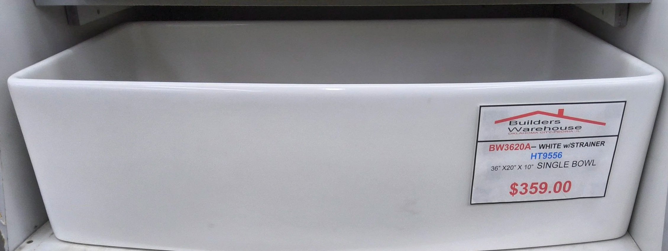 | WHITE SINGLE BOWL / HT9556-BW3620A | FIRE CLAY FARM SINK | 36x20x10 | $359.00 |