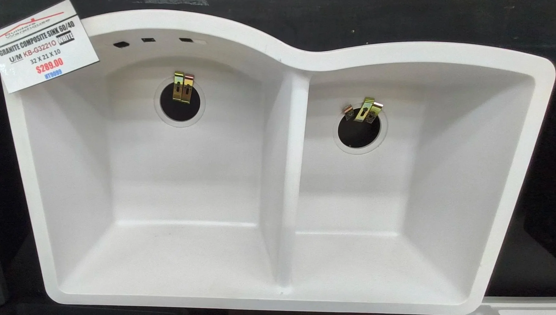 | WHITE 60/40 KB-G32210 | GRANITE COMPOSITE UNDERMOUNT SINK | 32x21x10 | $289.00 |